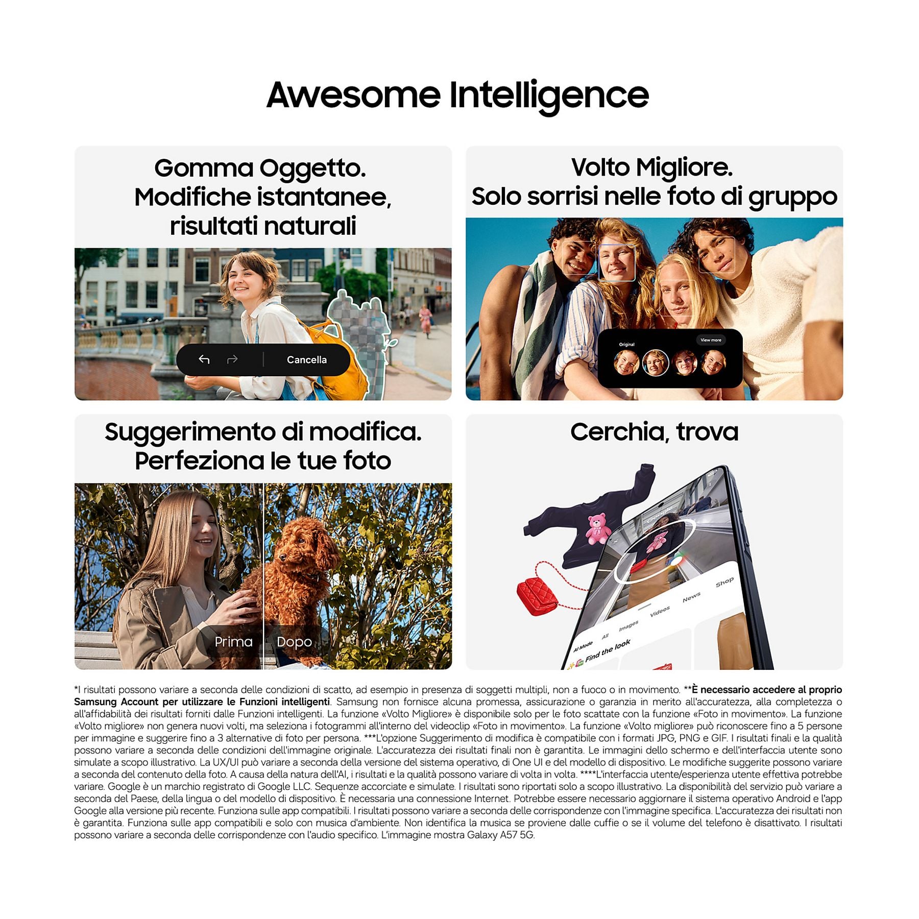 Cerca in modo intuitivo tutto quello che vuoi sul tuo schermo con Cerchia e Cerca e raggiungi nuovi livelli di produttività con le funzioni di Awesome Intelligence, come Gomma Oggetto, Volto Migliore e Suggerimento di modifica.